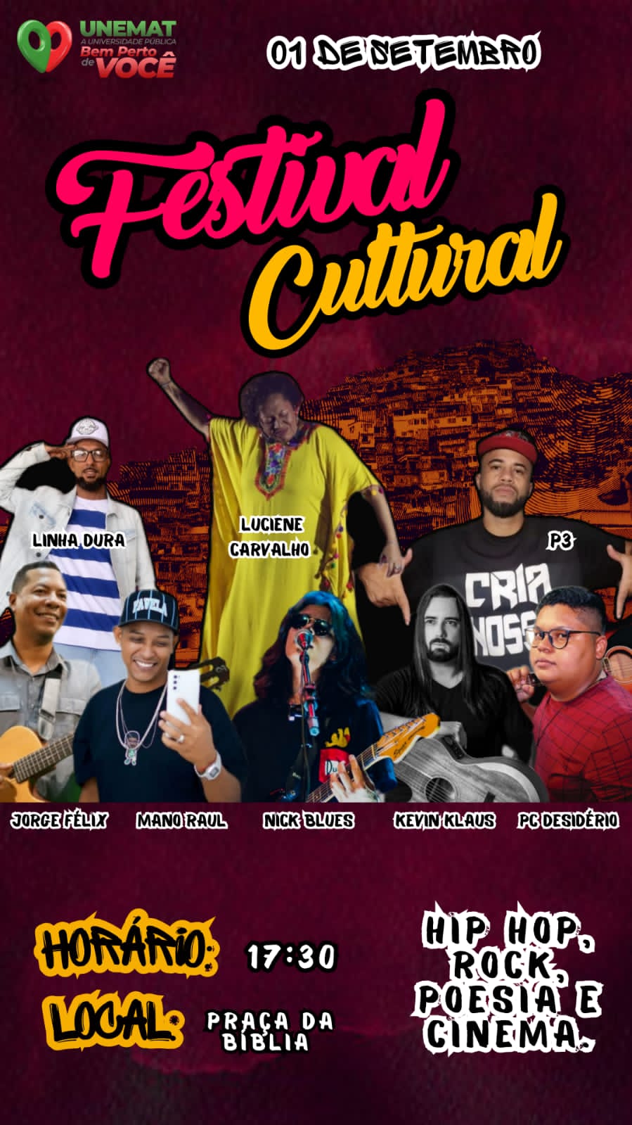 Música, Poesia e Cinema: Unemat promove Festival Cultural nesta sexta, na Praça da Bíblia