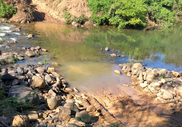 Visível ponto de degradação no rio Jauquara, para construção de uma ponte.