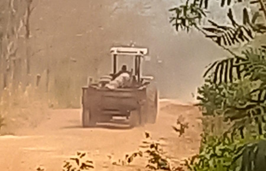 Trator conduzido por invasor transporta madeira extraída ilegalmente da área de reserva da comunidade (foto produzida por moradores).