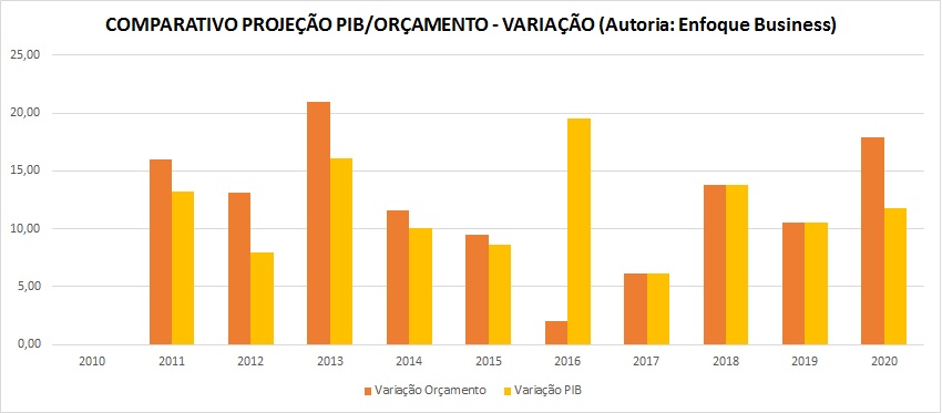 O cruzamento dos dados históricos (PIB e Orçamento Municipal) desde 2010 revela uma correlação estreita: a variação média anual de ambos os indicadores é de, aproximadamente, 13%. Essa semelhança de proporções é o fundamento da projeção, correlacionando o crescimento orçamentário ao crescimento do PIB até a última medição oficial do IBGE, em 2021. (Ver Tabela 1 em anexo, que representa a correlação entre as variáveis).